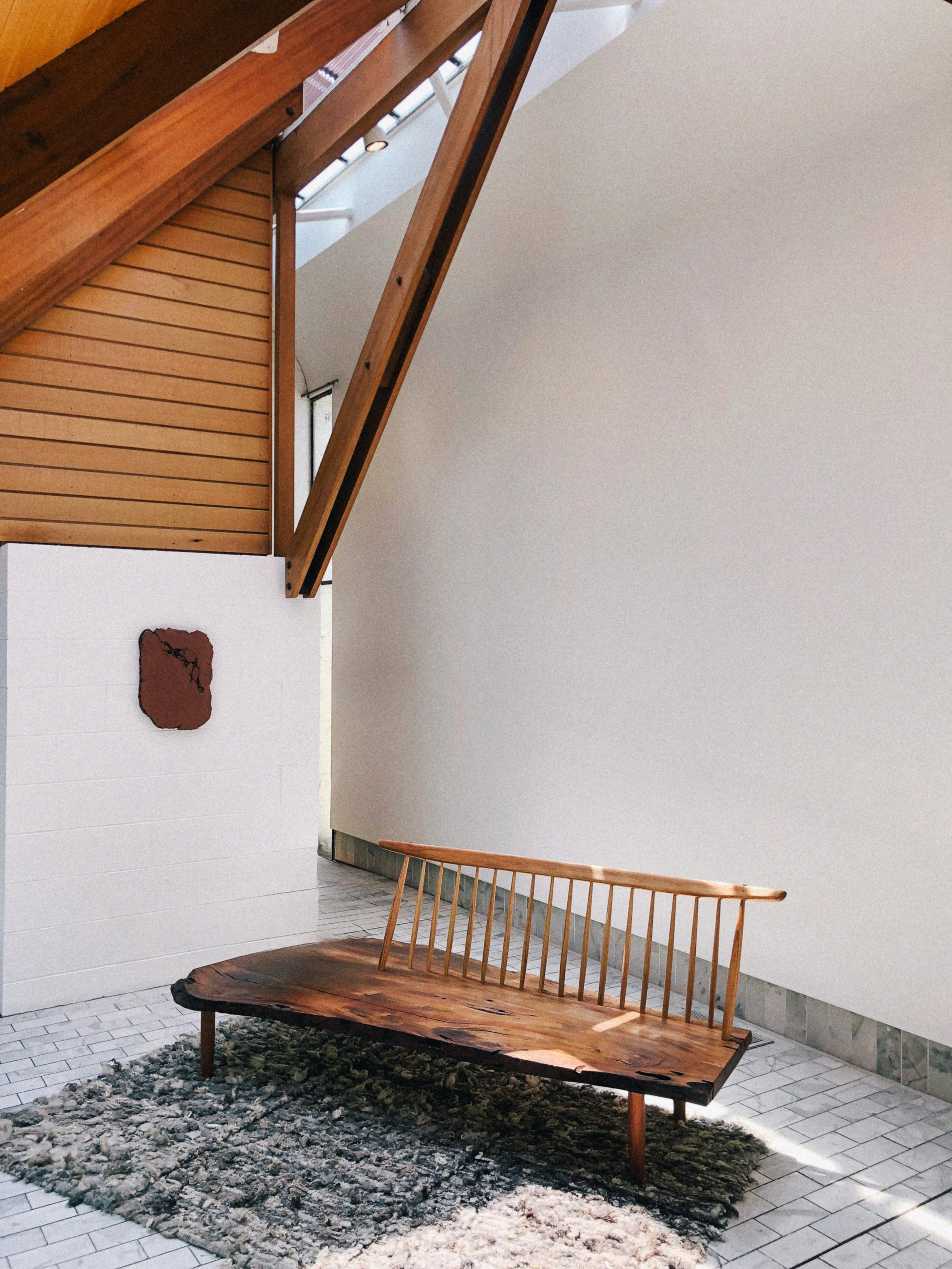 George Nakashima inspired bench seat. Crafted from a Matai slab pulled from the Haast river. Features hand planed spindles and bow tie inlays. *Shipping included to New Zealand main centres.